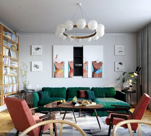 Современный интерьер подразумевает как четкое разграничение временных рамок, так и общий стиль совмещающий, например, яркие краски, принтованные поверхности, прямые линии мебели, но при этом обилие подушек, пуфов, «трофейные» аксессуары в одном помещении. Получается, сочетаний стилей сразу трех десятилетий, главное при этом найти какую-то особенность, на которую как бусы на нить соберется вся эта эклектика. Таким связующим звеном может стать цвет, материал отделки (лучше всего использовать дерево) или тип орнамента. Танцевать можно начать буквально «от печки» или хотя бы от кресла, столика или того же барного шкафчика, доставшегося от бабушки. При этом можно вовсе не использовать винтажные вещи, а ограничиться подбором современных вариантов в интересующей стилистике. Главное, чтобы хозяину было комфортно, а гости, заходя в дом, могли без предисловий сказать: «Ого, какое у вас тут ретро!»
